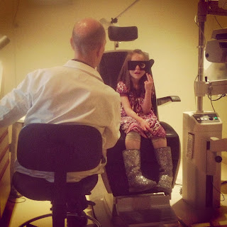 I was at the school one day working on some of my PTO stuff when Nina's teacher, Mrs. Frye, stopped me in the hall and told me that Nina really needed to get her eyes checked. Nina was sick on the day that the school had their vision and hearing screenings so we missed that chance. Sure enough, we take her in and she's blind as a bat. Just like Matt, me, Donovan and Howie. I guess there wasn't a whole lot of hope for her! She picked out some cute frames and can clearly see all the future mischief she would like to engage in. One of my favorite things is the ride home after the kids pick up their glasses. The whole time she was pointing out all the signs she could read, like she was seeing for the first time.